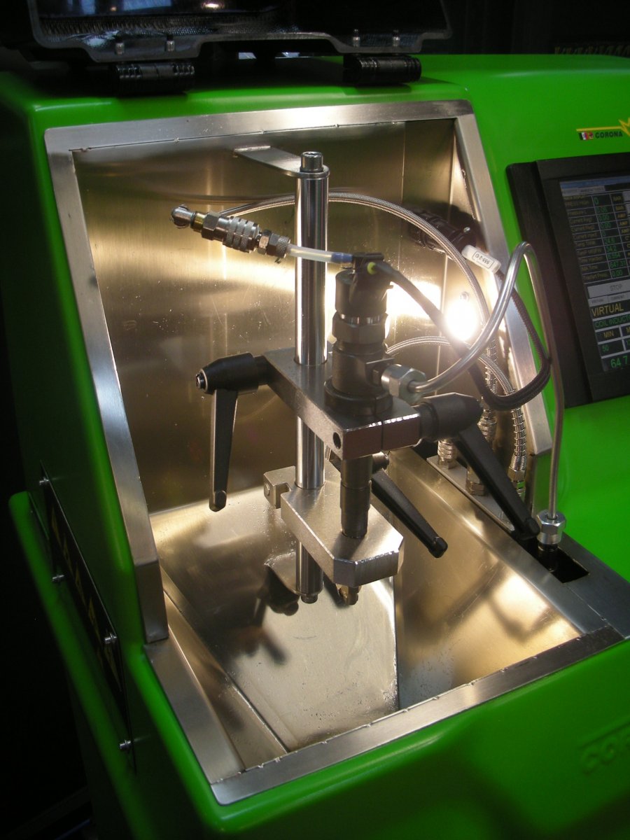 Banco prova iniettori automatico monocilindrico comprensivo di refrigeratore.