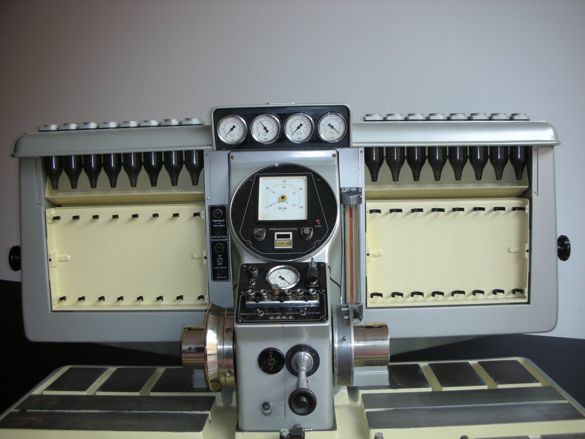Banco di prova 8+8 cilindri doppia testa, modificato Corona Diesel 18HP a controllo elettronico totalmente revisionato su idraulica, meccanica, verniciatura e impianto elettrico. Aggiornato alle normative CEE.