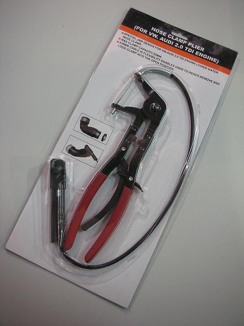Pinza per fascette medio-grandi ad incasso (Tipo Tubi Intercooler - Turbo Audi-VW) con prolunga comando a distanza.