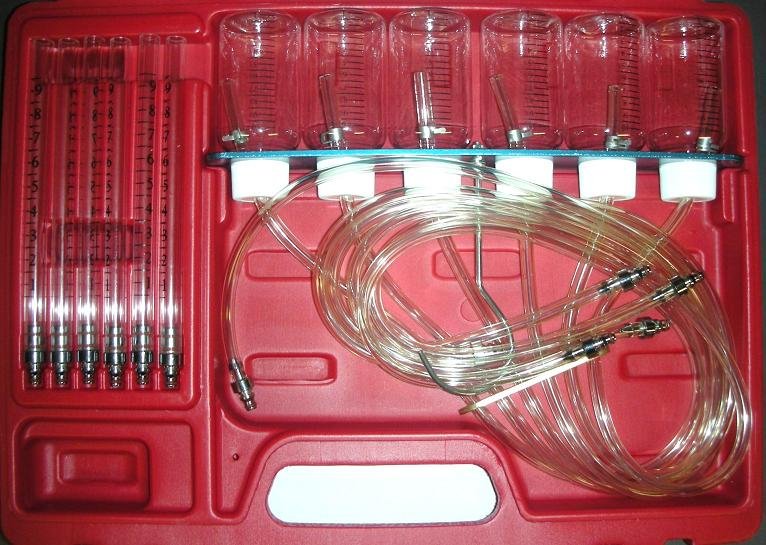 Cassetta burette provarifiuti sul motore elettroiniettori Common-Rail.