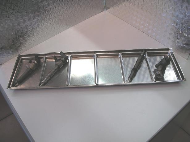Vassoio porta oggetti con 6 vaschette separate removibili, per riporre ordinatamente le parti sul banco di lavoro.