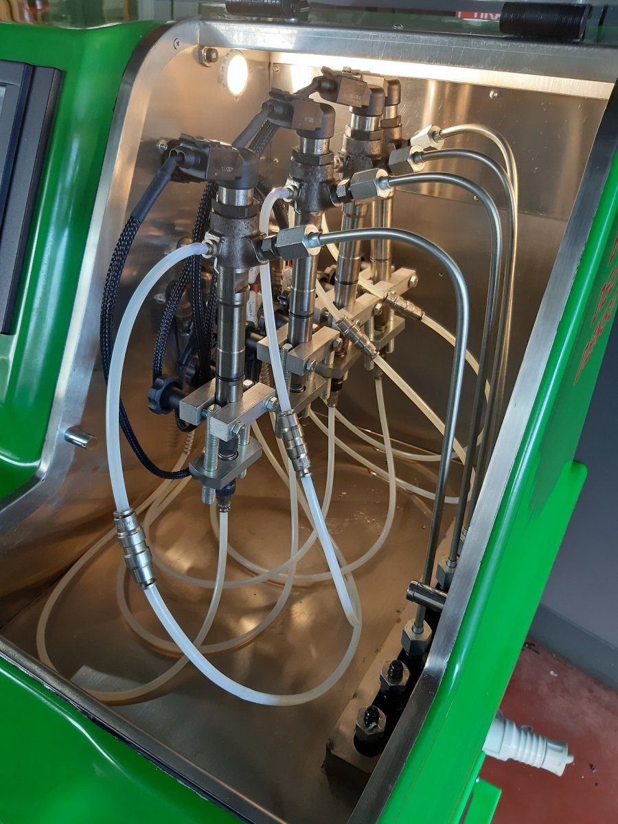Banco prova iniettori automatico 4 cilindri comprensivo di refrigeratore.